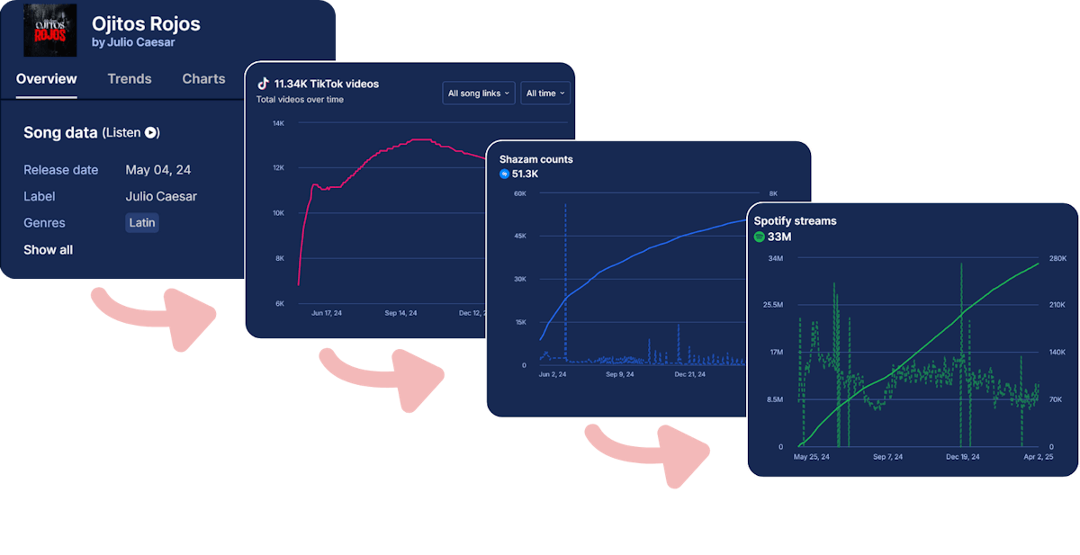 Every release, every post, every spike in engagement is a clue. Tracking these signals — which songs are being saved, where your audience is growing, what type of content drives plays — helps you make smarter moves.