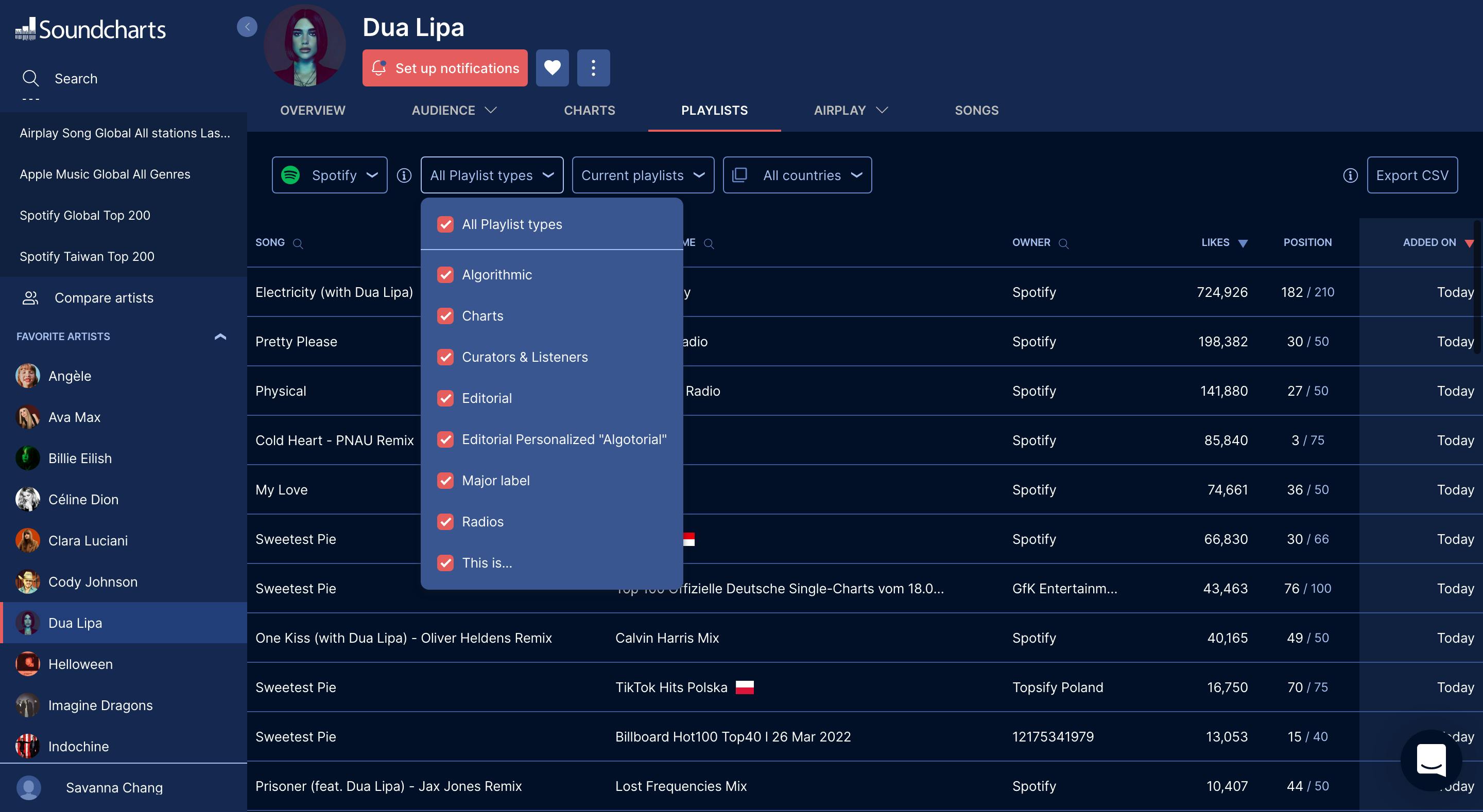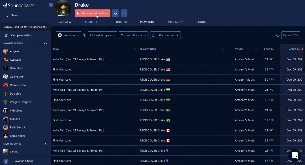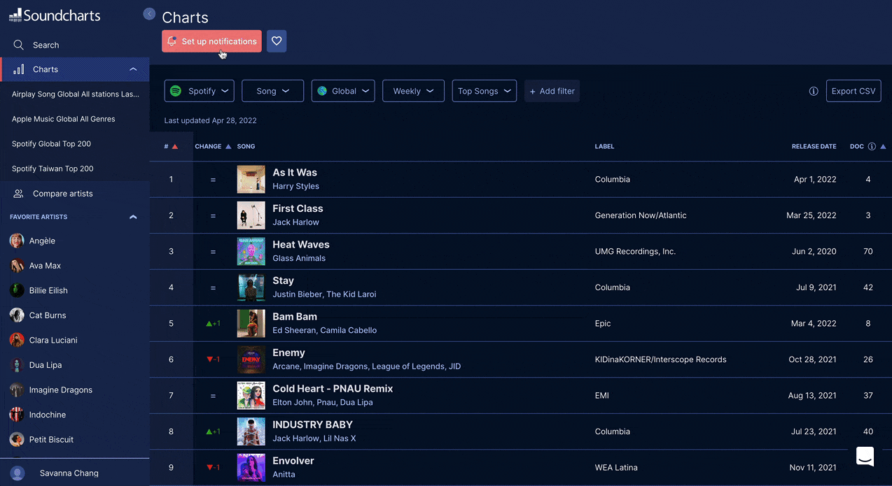 Soundcharts changelog