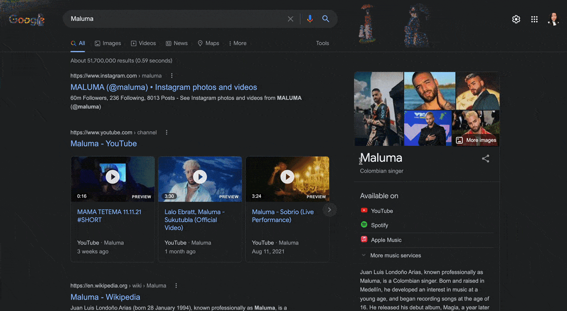 Any highlighted text on any website! (see animation below 👇 highlight + right-click 👉 Soundcharts search)