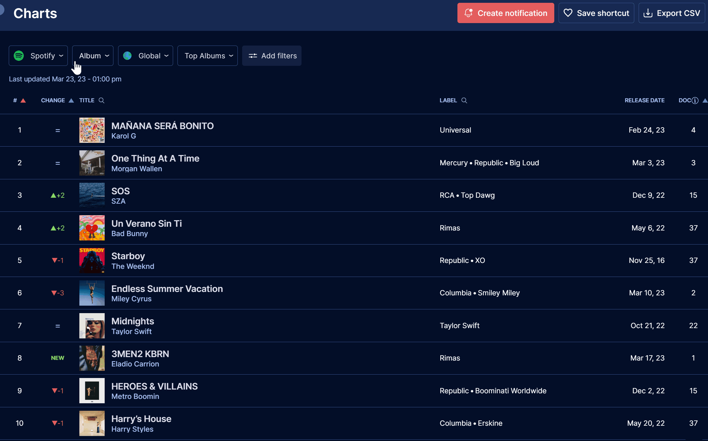 Each time there is a new entry in this specific chart or playlist, you'll receive a notification 📧