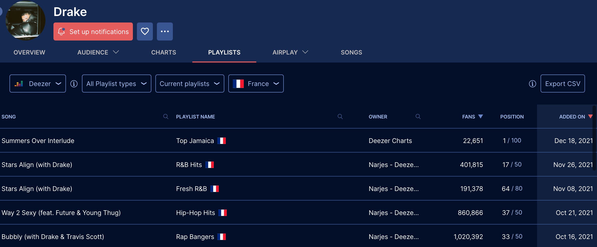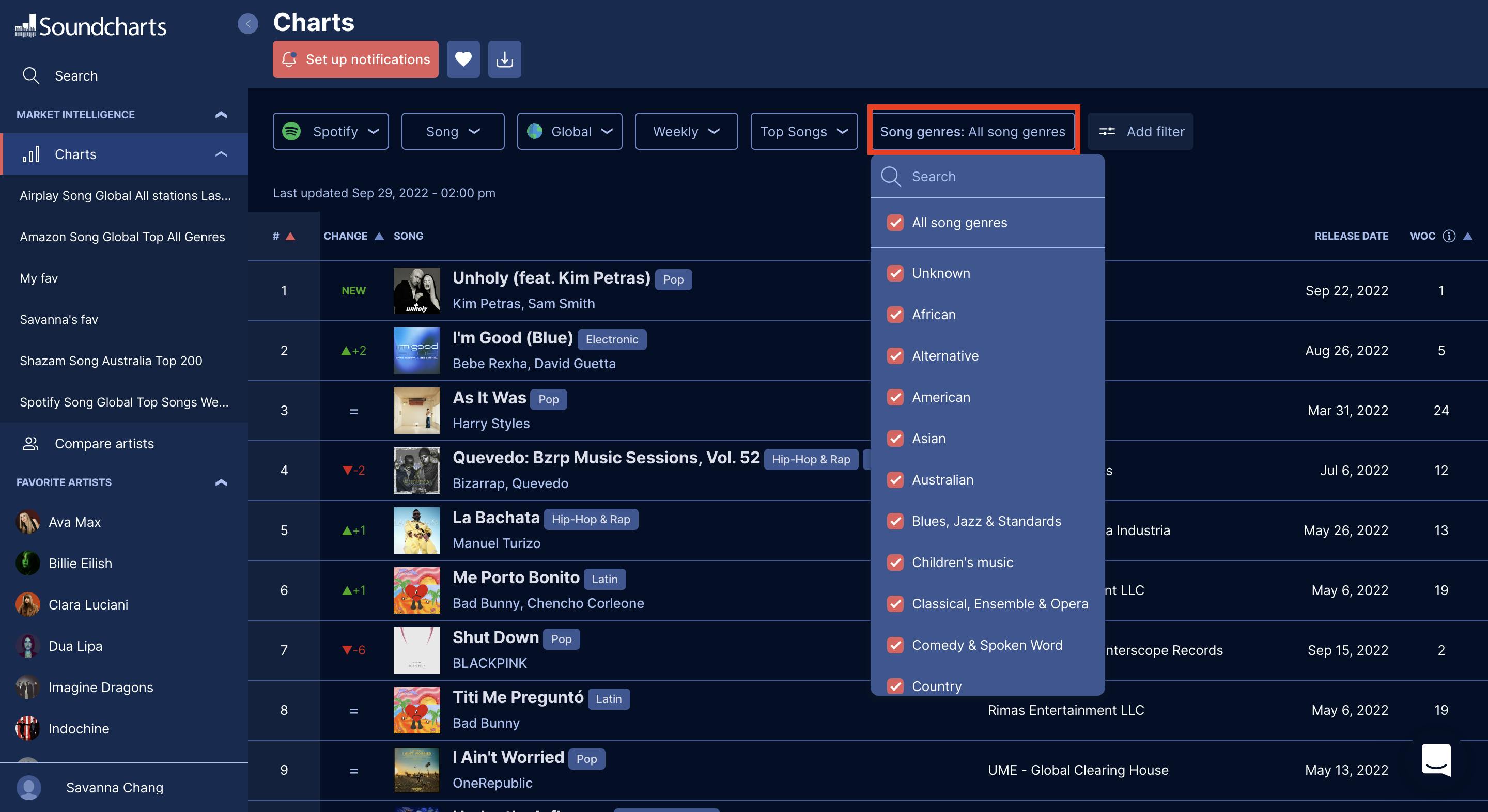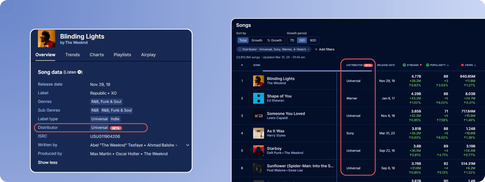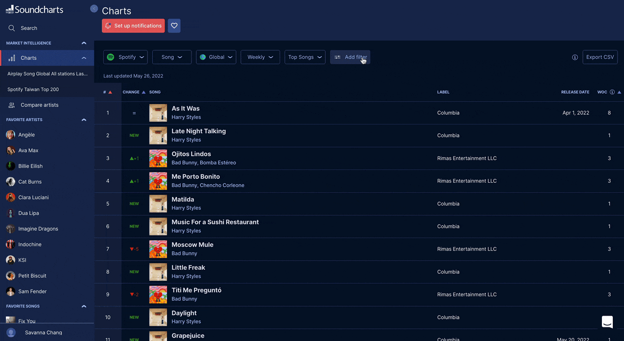 You can now refine Song Rankings using artist-level filters — making it easier to target specific profiles across 62M+ tracks.