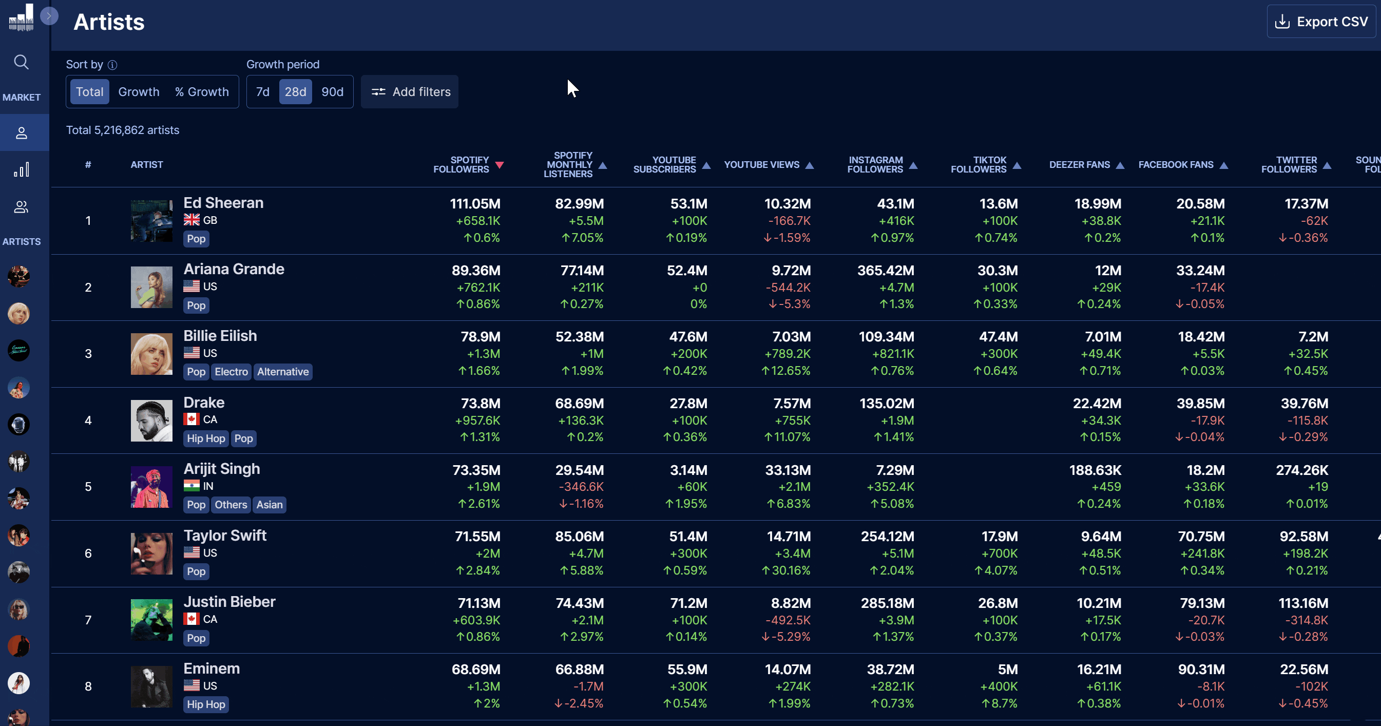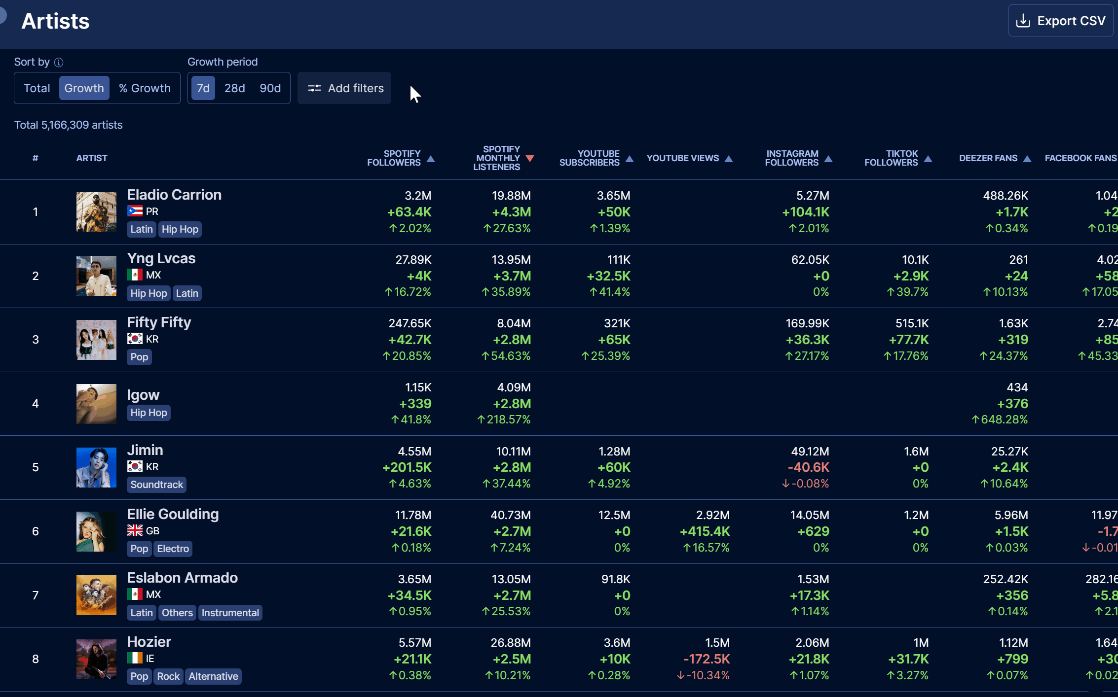 We've also added a new filter in the Artist Rankings, so you can quickly target artists by their Growth Level.