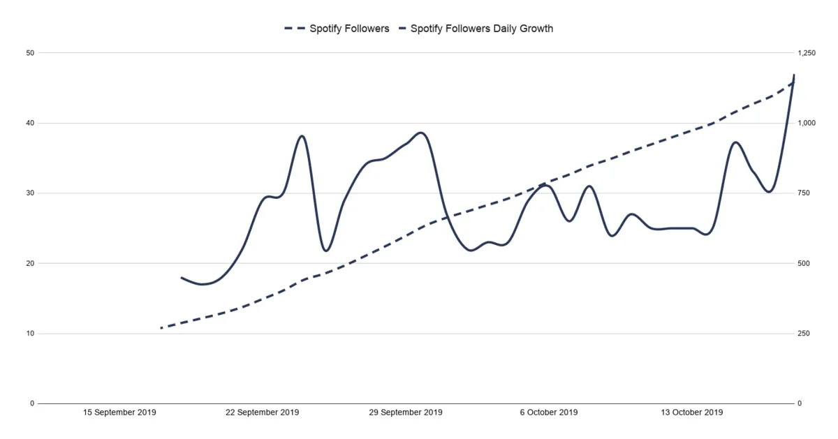 HL Wave Spotify Followers, 13/09/2019 — 18/10/2019