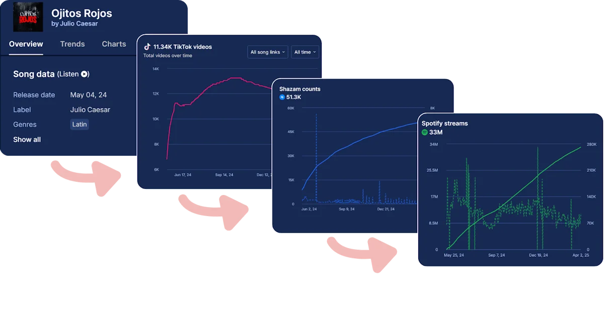Every release, every post, every spike in engagement is a clue. Tracking these signals — which songs are being saved, where your audience is growing, what type of content drives plays — helps you make smarter moves.