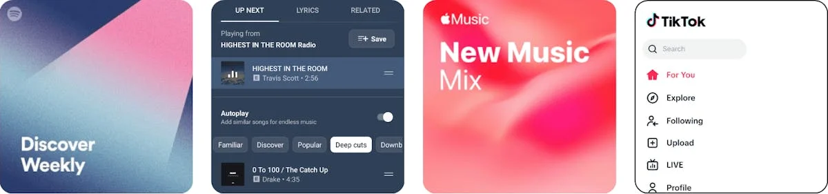 Algorithmic Discovery Features on Spotify, YouTube Music, Apple Music, and TikTok